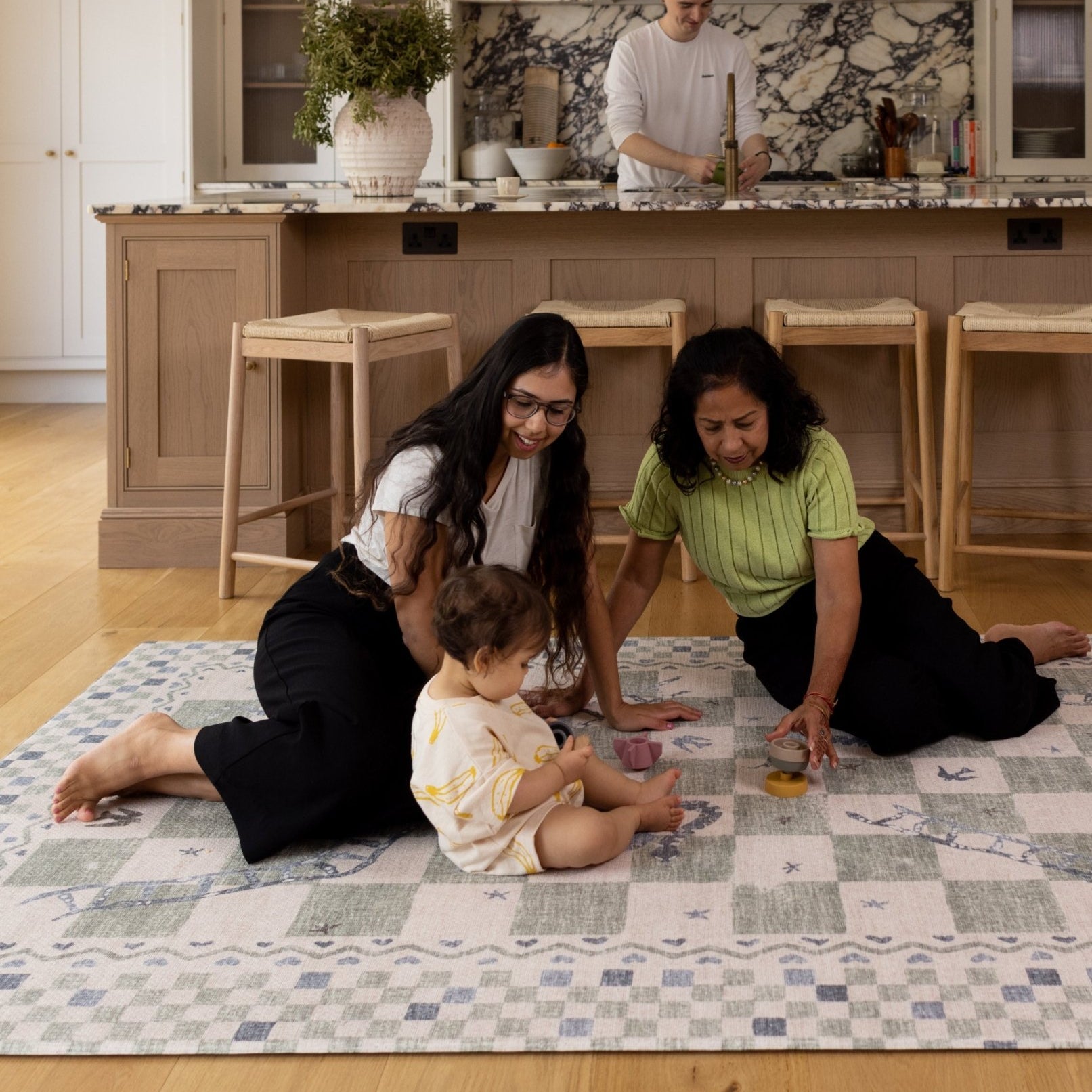 Exclusively in the XL size, this is our most playful playmat yet. With nostalgic designs, The Checker + The Ludo XL encourages the whole family to take to the floor together.
